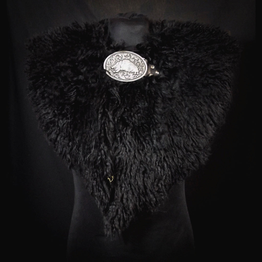 Black Sheepskin Mantle - Boar Buckle
