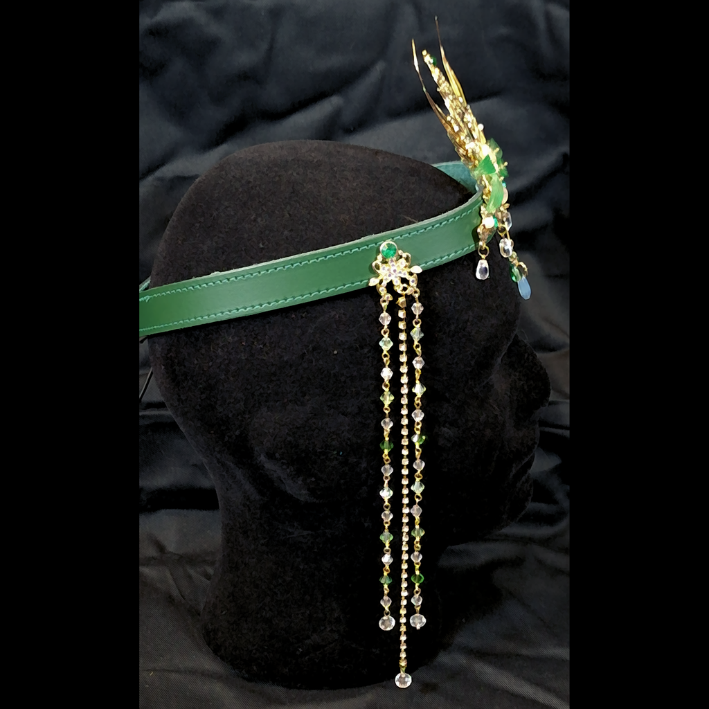 Gorgeous, unique crowns, hand made from a combination of pre-made components and jewellery wire, beads and findings. Each crown is on a leather band with elastic ties for ease of fitting and should fit most adults.